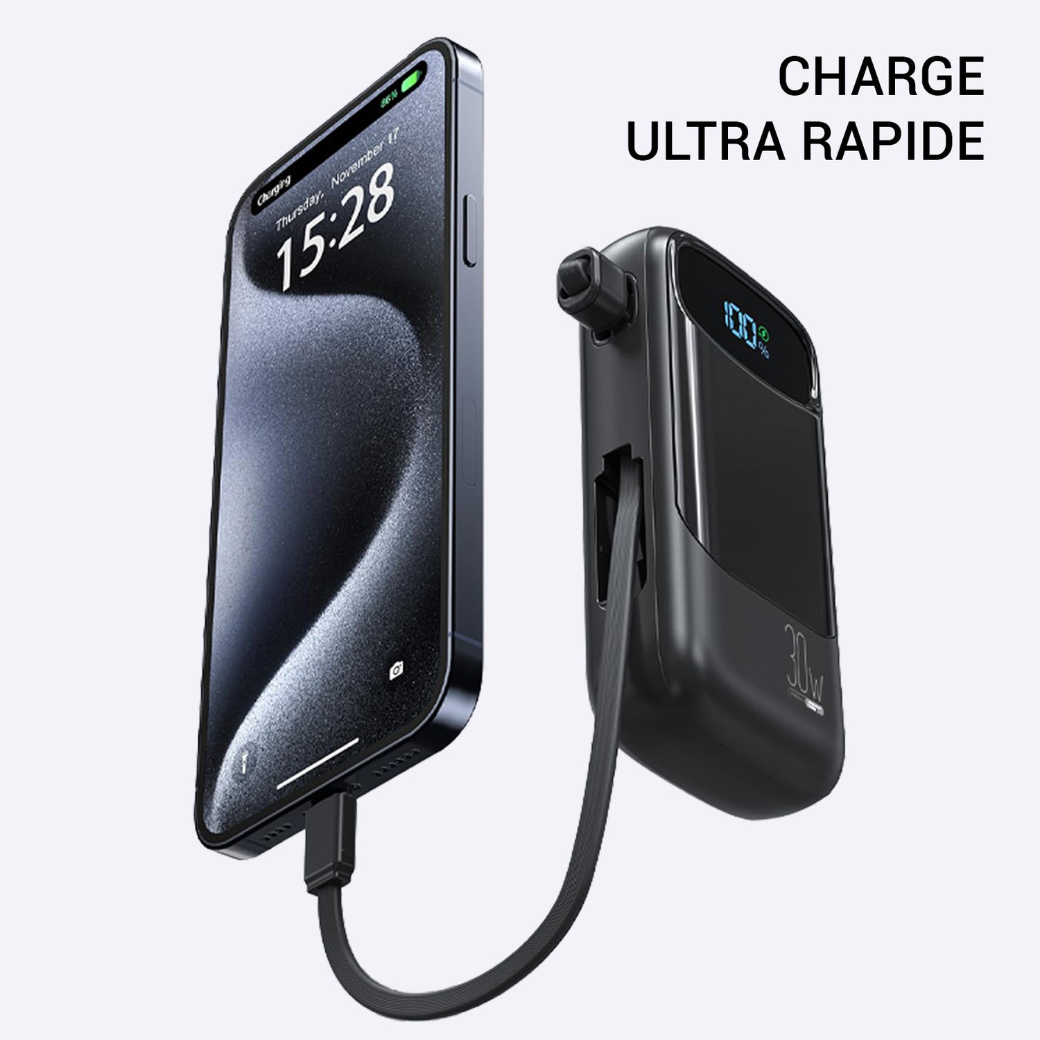 Support PD 30 W pour recharger votre téléphone jusqu’à 2× plus vite que les chargeurs classiques.