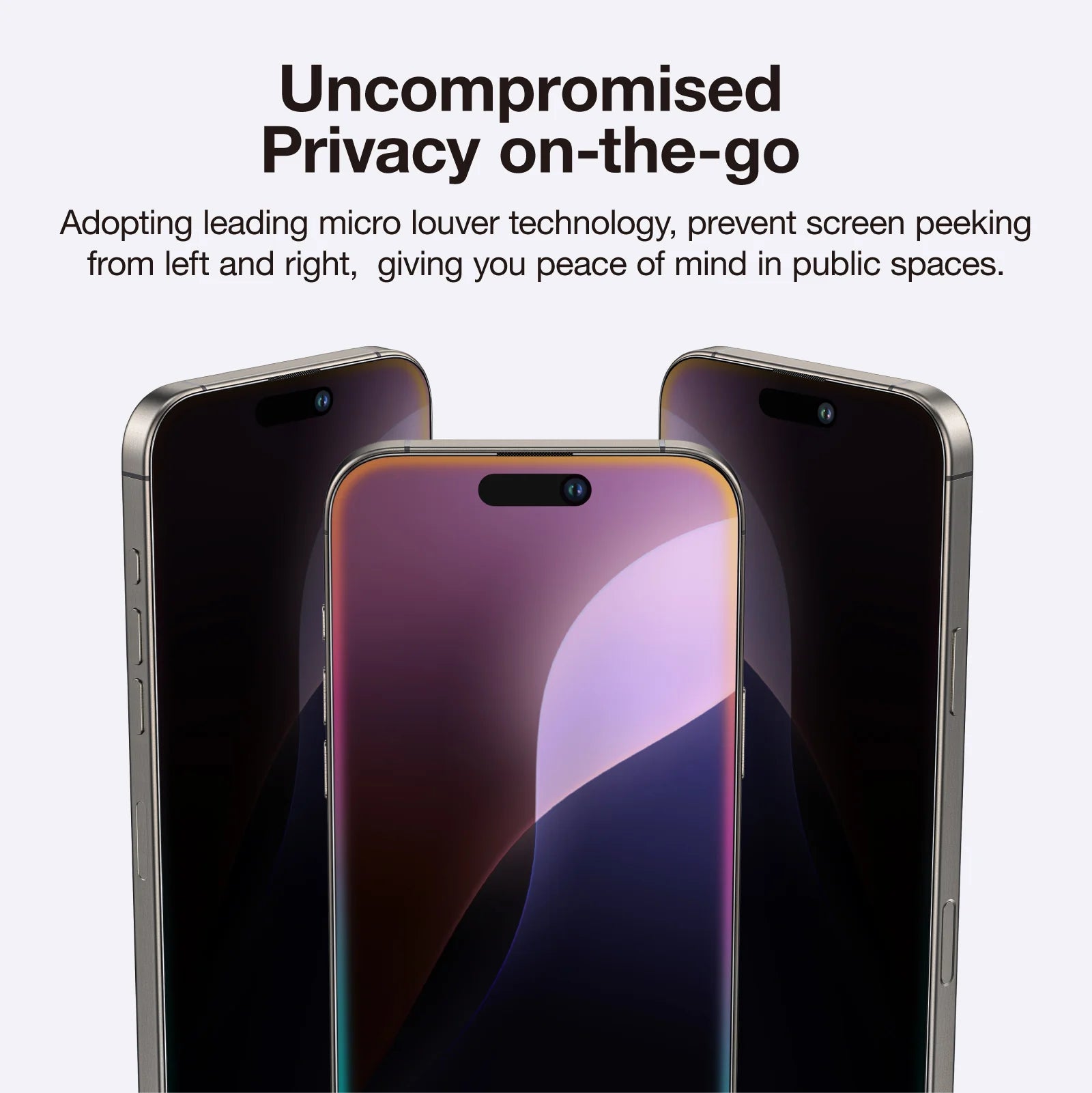 Idéal dans les transports, au bureau ou en public : vos messages, photos et données restent strictement privés, sans compromettre la clarté frontale ni la sensibilité tactile.